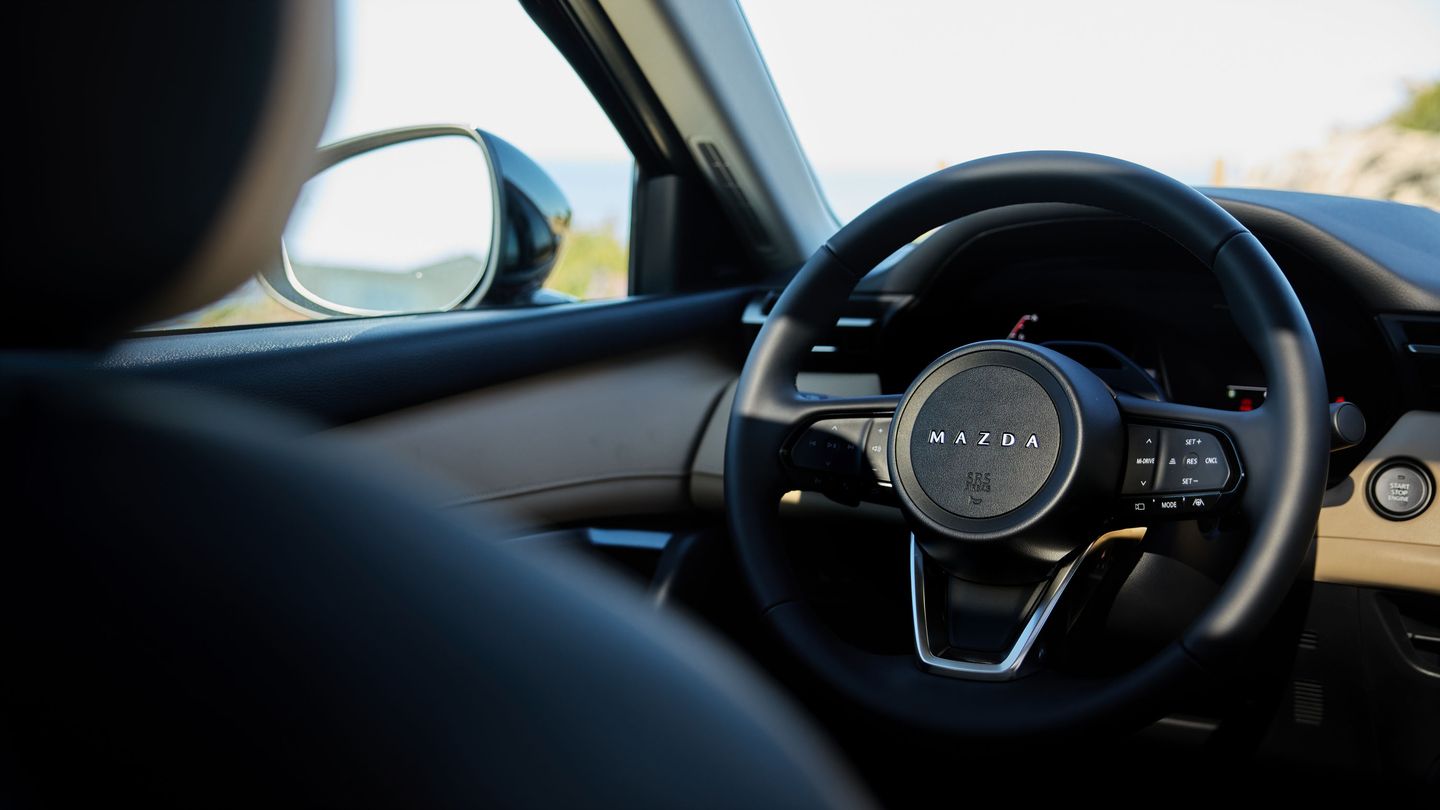 The 2026 CX-5 adds new steering wheel controls that let the driver interact with the infotainment system without lifting their hands from the wheel. These controls provide a secondary touchpoint for adjusting audio, accepting calls, and triggering voice commands — keeping the driver's eyes on the road and hands in position.